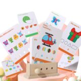 This set includes vibrant cards that utilize color and shape recognition, problem solving,and matching games to bloster cognitive development in children.